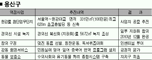 위기를 넘기자 좋은 소식이 잇따랐다. 용산 발전의 장애물로 여겨졌던 미군기지와 철도공사 부지가 ‘금싸라기 땅’으로 급부상했다. 미군기지(81만평)는 120년 만에 온전히 시민의 품으로 돌아와 민족공원으로 조성된다. 박 구청장은 “뉴욕의 센트럴파크를 능가할 것”이라고 자신했다.