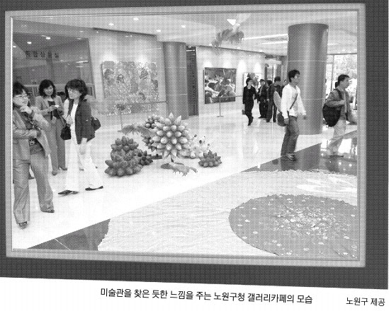 노원구가 지난 5월 구청사 로비와 2층을 개조해 만든 ‘갤러리카페노원’(894㎡)이 주민들과 인근 직장인들의 피서장소로 각광을 받고 있다.
