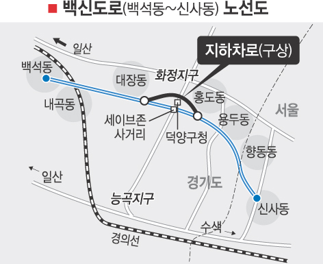 백석동∼신사4거리간 도로는 총연장 10.7㎞(4∼6차로)로 지난 1998년 화정지구 개발과 함께 도시계획도로로 지정됐다. 총 공사비는 2134억원으로 화정동∼신사4거리간 5.0㎞는 사업비 중 50%가 국비로 지원되는 광역도로이고, 백석동∼화정동간 5.7㎞는 시도이다.