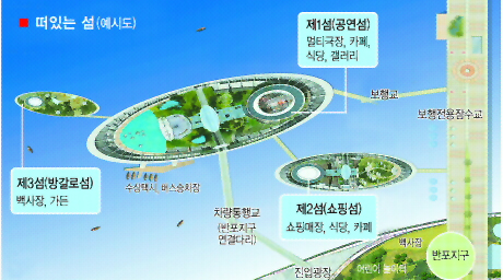 1일 서울시에 따르면 한강르네상스 계획의 하나로 만들어지는 ‘떠 있는 섬’은 잠수교의 보행 전용화와 연계해 1년 내내 수상 공연, 레저 등 다양한 문화활동을 할 수 있는 곳으로 조성된다.