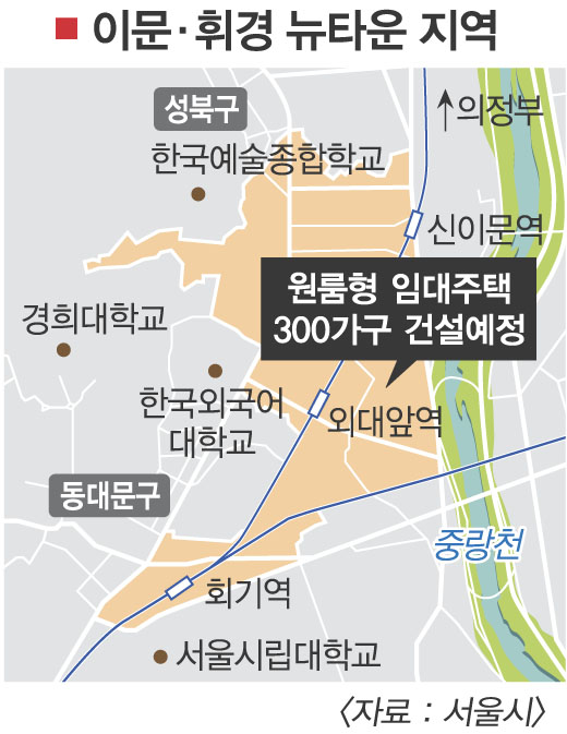 서울시는 2일 “뉴타운 지역에 대학생과 독거노인용 원룸형 임대주택을 짓기로 했다.”며 “시범지구인 이문·휘경 뉴타운에 이르면 2010년까지 300가구를 공급한다.”고 밝혔다.