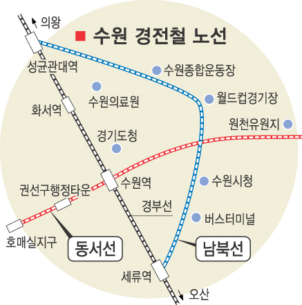시 관계자는 “기존의 대중교통수단이 수원 도심 중심으로 편중되어 환경오염 및 교통 체증을 유발하고 도시발전을 저해하는 문제점이 있었지만 경전철이 설치되면 이 같은 문제가 해소될 것”이라고 밝혔다.