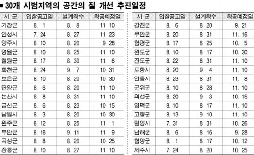 현재대로 진행되면 다음달 21일 전남 강진군이 공사에 들어가는 것을 시작으로 살기좋은지역만들기 사업이 본궤도에 오르게 된다.