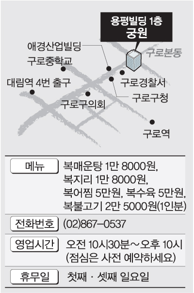 자연산 참복을 제대로 맛볼 수 있는 구로구 구로본동 복어 전문점 ‘궁원’을 김경훈 구로구의회 의장이 추천했다.