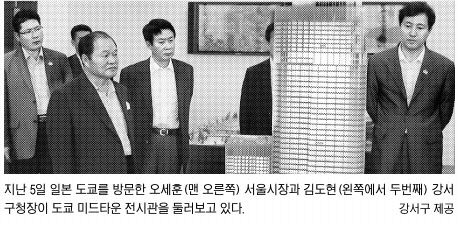 ‘제3세대 복합도시’를 지향하는 강서구를 주목하라. 김도현 강서구청장은 지난 5일과 6일 미래지향적인 도시개발을 위해 일본 도쿄 도심재개발 지역을 방문했다. 김 구청장은 당시 동북아 투어 중 일본에 도착한 오세훈 서울시장과 일정을 함께했다.1박 2일간 김 구청장은 최근 도심재개발의 성공사례로 주목받는 일본 도쿄의 롯본기 힐스, 미드타운, 마루노우치 등을 집중 시찰했다.상가, 호텔, 사무실, 미술관, 주거, 녹지 등이 한데 모여 일과 주거, 생활과 문화가 함께 어우러진 신개념의 도심공간으로 평가받고 있는 곳이다.