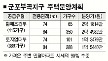 대한주택공사는 4일 부곡택지지구에 토지임대부 아파트 389가구, 환매조건부 아파트 415가구 등 모두 804가구를 오는 15일부터 분양한다고 밝혔다. 토지임대부 주택은 토지소유권이 주공에 있어, 건물 소유권만 가진 입주자는 매달 37만 5000∼42만 5000원의 토지사용료를 내야 한다. 환매조건부 주택은 분양 후 20년 이내에 팔 경우 주공에 되팔아야 한다.