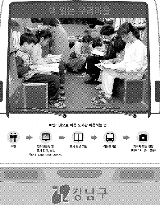 또 강남구에 있는 45개 도서관의 장서 85만권 가운데 원하는 책을 골라서 대출 신청을 하면 이동도서관의 정기 방문일에 이를 가져다 주는 ‘고객맞춤서비스’를 도입했다. 신사동에 사는 주민이 개포동 소재 도서관에 있는 책을 인터넷으로 신청하고, 이동도서관을 통해 받아볼 수 있는 시스템이다.