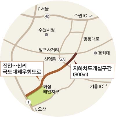 지하화 예정 구간은 화성시 반월동 지방도 343번에서 영통대로 접속부까지 800m 구간으로 설계 변경에 따라 도로 개통은 2010년쯤에나 가능할 것으로 예상된다.