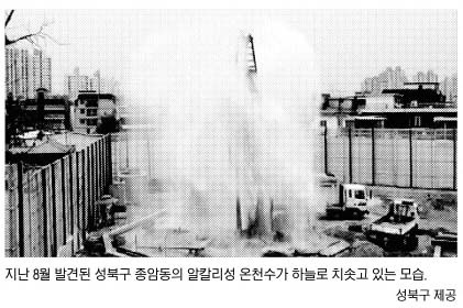 12일 성북구에 따르면 이번에 발견된 온천은 관련법 규정에 의한 적정수량, 수온, 수질검사 등 각종 검사에서 온천수에 적합한 것으로 판정돼 ‘온천발견신고처리’했다.