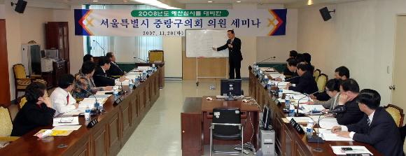 20일 중랑구 의회 7층 소회의실에서 중랑구의회 의원 17명이 머리를 맞대고 ‘열공 모드’에 돌입했다.