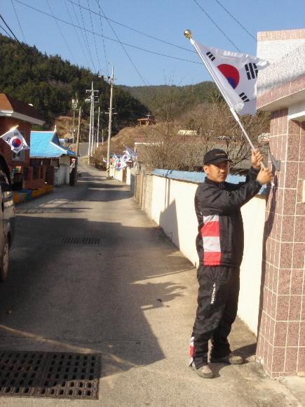17일 영덕군에 따르면 축산면 축산 1·3리 750여 가구는 지난 2월 정부에 의해 사업대상지역으로 선정된 것을 기념하고 ‘나라사랑 실천 태극기 마을’을 스스로 조성해 보자는 취지로 연중 태극기 달기 운동에 들어갔다.
