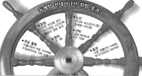 이처럼 컨테이너선 취항이 성공적으로 자리를 잡으면 연간 10만TEU의 컨테이너를 처리하며 본격 무역항으로의 면모를 갖춘다. 동해항은 시간과 비용이 상대적으로 적게 드는 장점을 갖고 있다.