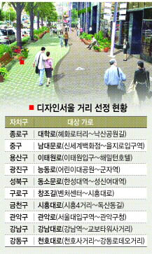 국제 디자인 도시로 거듭나려는 서울시 정책에 발맞춰 일선 자치구도 디자인 전담부서를 설치하고 거리 리모델링 계획을 발표하는 등 ‘디자인 경쟁’에 나서고 있지만 성과가 신통찮다.