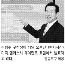 11일 영등포구에 따르면 김형수 구청장은 미국 텍사스 주 댈러스에서 열린 제69회 미국행정학회 연례포럼에 참가해 1500여명의 각국 행정전문가와 학자들을 대상으로 반부패 공공서비스 투명성분야에서 연구결과를 발표했다.