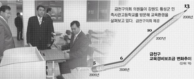 지난 6일 금천구의회 교육특위 위원들은 강원과 경기, 서울을 도는 학교투어에 나섰다. 자립형 사립고와 기숙형 공립학교 등의 운영현황을 미리 파악해 구에 맞는 모델을 찾기 위해서다.