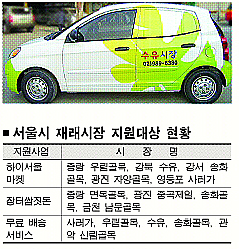 또 사러가시장과 우림골목시장이 추진하는 ‘무료배송서비스’를 수유시장, 송화골목시장, 관악구 신림1동시장 등에서도 진행한다. 이들 시장에 배송차량 2대 구입비와 인테리어 비용 등을 주고, 총 10개 시장으로 확대할 계획이다.