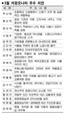 이 밖에 초등학생을 대상으로 형식적으로 진행되는 소방훈련을 소화기를 직접 조작해보는 등 체험학습으로 바꾸자는 추난영(38·강동구 명일동)씨, 소화제 두통약 등 상비약을 편의점이나 슈퍼에서 살 수 있게 해야 한다고 주장한 강문숙(48·용산구 산천동)씨 의견도 있었다.