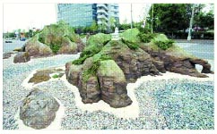 독도 조형물은 2006년 남부순환로 교차로의 안전지대 부지에 볼거리 조성과 함께 각종 공해 예방과 안전을 위해 만들었다. 실제 독도를 600분의 1 크기로 축소 재현, 약 350㎡의 면적에 3m의 인공암으로 독도의 모습을 고스란히 표현했다. 또 주변 커다란 바위로 바닷속 암초를 표현했고 초록 옥석으로 파도에 부딪히는 포말을 연상하도록 했다.