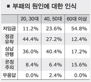 (예) 다음의 자료는 우리나라 20대 이상 성인을 대상으로 분야별 부패정도와 부패의 원인에 대한 인식을 조사한 것이다.