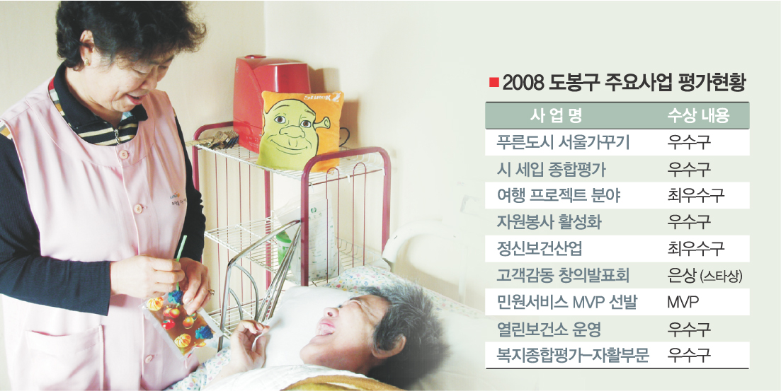 도봉구는 2008년 정부와 서울시 등 평가에서 돋보이는 성적을 냈다.