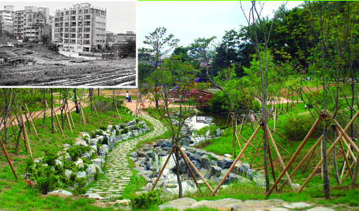 무허가 건물이 빼곡히 들어서 있던 은평구 구파발동 117의1 일대도 산책로와 작은 계곡이 어우러진 자연 그대로의 모습으로 되돌아갔다.