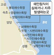지난 1998년부터 동해안에서 심각한 해안침식 피해를 보고 있는 대표지역 9곳은 특별 관리되고 있다.