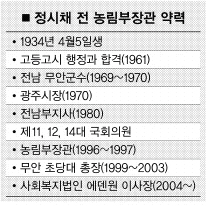 4일 전남 무안군 청계면 상마리 언덕배기에 자리한 에덴원을 찾았다. 중풍·치매 등에 걸린 노인 70명이 생활하는 사회복지법인 요양원이다. 결코 오랜시간 머물 수 없을 것 같은 외로운 이들이 눈에 들어온다. 굽은 허리와 손마디, 못 듣는 귀…. 살아온 날이 순탄치 않았음이 단박에 묻어난다. 다른 이의 도움 없이는 단 하루도 지낼 수 없는 이들이다. 하지만 동행자가 있었다. 42년 공직을 마치고 사회봉사로 눈을 돌린 정시채(75) 전 농림부장관이다. 그는 2004년 9월 사재(12억원)를 털어 에덴원을 열었다. 일흔살로 접어들 때였다.