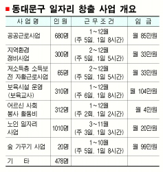 이를 통해 일자리를 얻게 될 주민은 주로 구청· 동주민센터·동대문구시설관리공단·현장 등에서 주 3~5일, 하루 4~8시간씩 일한다.