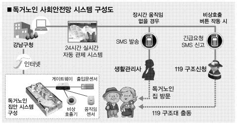 특히 강남구의 독거노인 사회안전망 시스템이 주목받는 이유는 누구든 비상호출 버튼만 누르면 소방방재청에 구조 신고가 자동 접수돼 신속한 응급조치가 이뤄지기 때문이다. 안전사고 발생 때 신속한 초동대처를 할 수 있다는 장점이 있다.