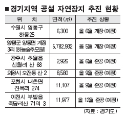 7일 경기도에 따르면 현재 전국에 24개의 자연장지 조성이 허가 신청된 것으로 알려진 가운데 80%인 19개가 경기지역에 설치됐거나 조성이 추진되고 있다. 자연장지 19개 가운데 6곳은 국가 또는 지방자치단체가 추진하고 있으며, 나머지는 개인이나 종중에서 조성 중이다. 산림청이 조성 중인 양평 수목장지 ‘하늘숲 추모원’과 수원시가 만들고 있는 자연장지는 이미 준공된 상태로 각각 다음달과 오는 6월 개장 예정이다.
