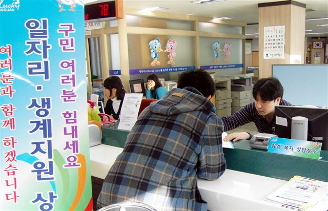 주민자치센터 프로그램 확대를 통해 일반 주민 92명이 새 일자리를 찾았고, 대학졸업생 등 청년들에게 행정업무 경험 등을 체험케 하는 청년 인턴으로 100명을 채용했다. 주민들에게 맞춤형 복지서비스를 제공하기 위한 ‘주민실태(욕구)조사팀’에 41명을 채용했다. 주민들은 구청 게시판이나 민원센터에 “감사하다.”는 말을 남겼다. 또 일자리 마련과 함께 지역을 푸르게 가꾸는 숲 가꾸기 사업과 공원관리에도 각각 24명과 14명을 채용했다. 아울러 구청 업무를 보조하는 환경개선부담금 부과·징수사업과 맞춤형 방문건강관리사업에도 각각 13명과 12명을 채용하는 등 다양한 분야에 일자리를 만들어 어려움에 처한 주민들에게 도움을 줬다.