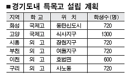 도 교육청은 이 가운데 화성(국제고)과 수원(예술고), 시흥(외고), 구리(외고), 이천(외고) 등 5곳에 대해서는 해당 지자체로부터 설립 신청을 받아 2006년 6월 특목고 설립 대상 지역으로 최종 선정했다. 고양과 부천 등은 도 교육청의 결정과 무관하게 독자적으로 추진하고 있다.