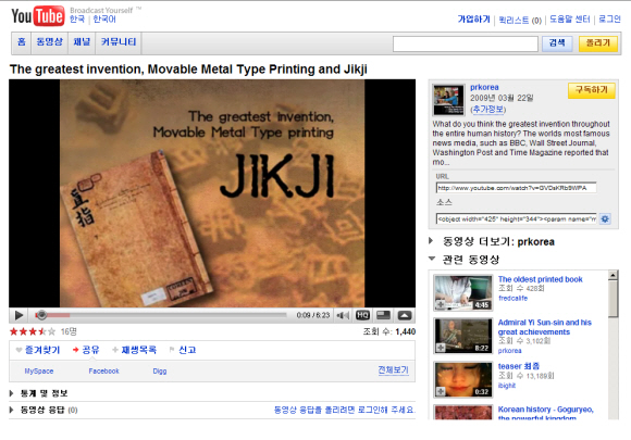 직지가 독일 구텐베르크 금속활자보다 78년 앞선 1377년에 만들어졌다는 내용을 담은 이 동영상은 현재 세계적인 동영상 사이트인 유튜브(www.youtube.com)에 올려졌다. 반크(www.prkorea.com) 박기태 단장은 국내 대학교에 다니는 해외 유학생들을 찾아가 이 동영상으로 ‘직지의 가치’를 교육할 예정이다.