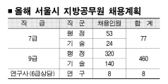 올해부터 공무원 응시연령 상한선이 폐지돼 경쟁은 치열할 전망이다. 채용인원은 지난해의 1833명에 비해 27.3% 수준이다. 채용 직급은 7급 77명, 8·9급 460명, 6급 상당의 연구직 8명 등이다.