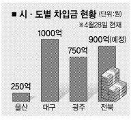 28일 서울신문이 취재한 바에 따르면 대구시, 광주시, 울산시 등 상당수 자치단체들이 금융권에서 250억~1000억원씩을 차입한 것으로 나타났다.