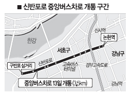 시는 신반포로에 이어 연말까지 양화·신촌로(양화대교~이대역 5.2㎞), 동작대로(방배경찰서앞~이수교차로 2.7㎞), 공항로(등촌중학교~김포공항입구 5.1㎞)에도 중앙차로를 설치할 계획이다.
