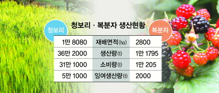 건강식품으로 인기가 높은 복분자도 상황은 비슷하다. 올해 전북의 복분자 수확량은 지난해보다 1650t 늘어난 1만 1795t에 이를 것으로 예상된다.