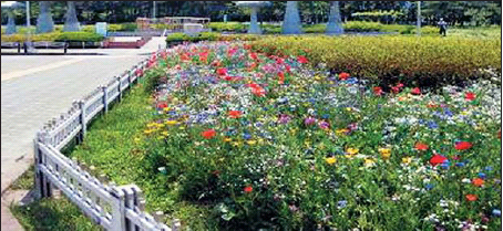 송파구가 지난 3월 올림픽대로 중앙분리대와 가락네거리 녹지대 등 5곳에 파종한 안개초·금잔화·수레국화·유채꽃 등 토종 야생화들이 6월 들어 한껏 아름다움을 뽐내고 있기 때문이다.