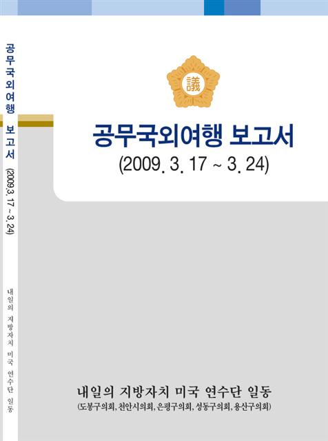 24일 김원철 서울 도봉구의회 부의장을 단장으로 한 한국지방자치단체연수단은 지난 3월17일부터 24일까지 선진 지방자치 시스템을 배우기 위해 방문한 미국에서 보고 느낀 점을 모아 ‘공무국외여행 보고서’를 최근 펴냈다.