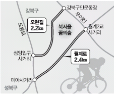 자전거 도로는 월계로 미아사거리~월계2교 2.4㎞ 구간과 오현길 삼양입구 사거리~강북구민 운동장 2.2㎞ 구간(지도)에 만들어진다.