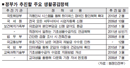 행정안전부는 28일 청와대에서 이명박 대통령 주재로 열린 ‘제2회 생활공감정책 점검회의’에서 이 같은 내용의 신(新)생활공감과제 75건을 보고했다.