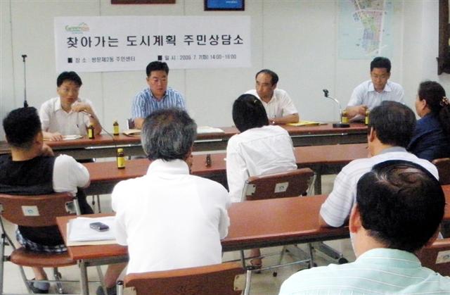 이번 주민상담소는 주민들이 어려운 도시계획 업무와 관련 법규를 쉽게 이해할 수 있도록 상담해주기 위해 각 동주민센터에서 순차적 이동상담소를 운영한다. 상담분야는 ▲도시계획 ▲재정비 촉진지구(뉴타운) ▲주택재개발 ▲주택재건축 지구단위계획 등으로 도시개발과 재건축·재개발 관련한 모든 것을 상담해준다. 이동 상담반은 도시계획과 담당 팀장을 반장으로 팀별 1명씩 총 4명으로 전문적 지식을 가진 직원들이 관련법규 및 진행사항 등에 대한 분야별 상담을 실시한다. 현장상담이 원칙이며 정확한 행정서비스 제공을 위해 질문지를 작성해 상담일 일주일 전까지 동사무소에 제출하면 더욱 정확하고 알기 쉬운 답을 들을 수 있다.