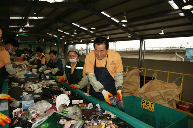 구청장등 간부 14명 ‘더 좋은 세상’서 재활용품 선별 작업