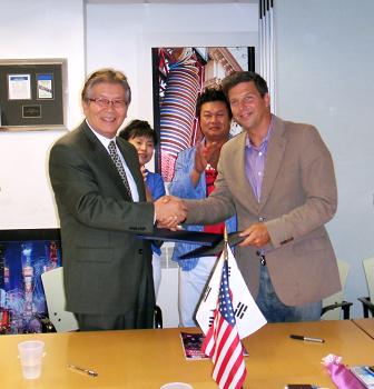 | MOU 체결 지난 8일 미국 뉴욕시 타임스퀘어 얼라이언스 사무실에서 박웅(왼쪽) 대학로문화발전위원회 이사장과 팀 톰킨스 얼라이언스 사장이 양해각서에 서명한 뒤 악수하고 있다. 종로구 제공 |