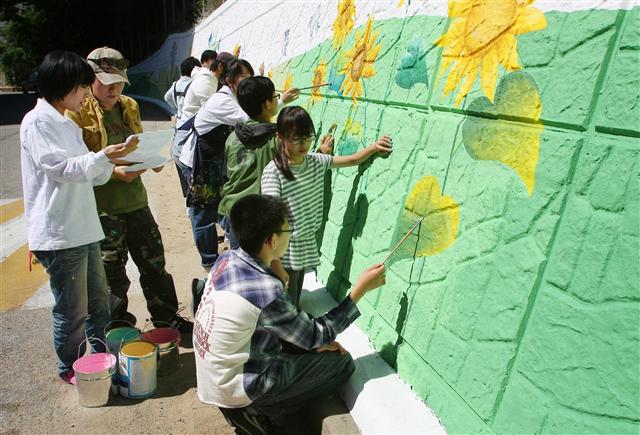벽화 작업은 지난 1일 벽면 청소를 시작으로 13일 스케치 작업, 19~20일 이틀간 벽화전문가의 지도로 본격적인 벽화 그리기가 진행됐다.