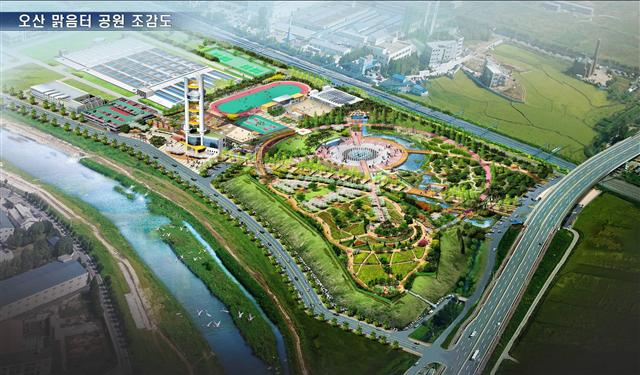 오산시는 22일 오산동 제2하수종말처리장과 누읍동 음식물쓰레기 매립장 부지에 조성중인 ‘오산 맑음터 공원(조감도)’을 이달 중 완공, 다음달 말 개방하기로 했다고 밝혔다.
