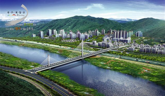 대구시는 6일 북구 금호동 금호택지지구와 달성군 다사읍 방천리를 연결하는 총연장 597m의 사장교를 내년 7월 준공 목표로 추진한다고 밝혔다.
