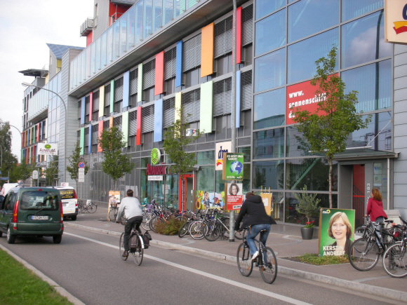 프라이부르크에 들어서면 알록달록한 외벽의 집들이 눈길을 끈다. 도심을 가로지르는 트램(전동차) 이 곳곳에 깔린 푸른 잔디와 은행·단풍잎을 연상시키는 자연을 닮은 색은 눈의 피로를 덜어주고 편안함을 안겨준다. 이 집들은 모두 최첨단 친환경 설계를 통해 에너지 소모를 크게 줄여주는 기능까지 갖추고 있다.