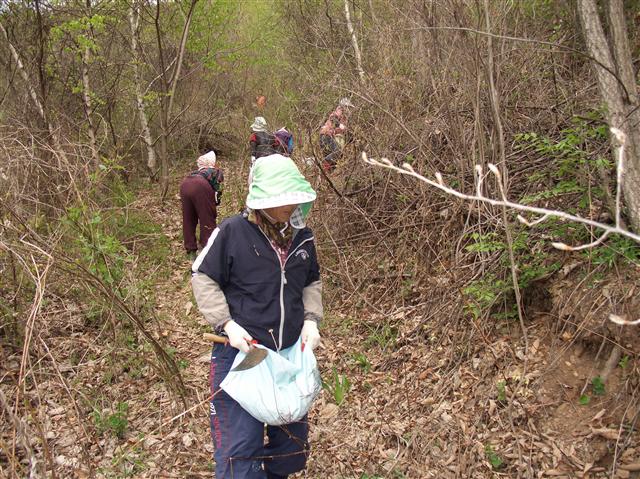 회원들의 점퍼 주머니에는 하늘에서 뿌릴 인삼씨앗이 가득하다. 20여분 만에 이들이 도착한 곳은 증평읍 율리에 위치한 좌구산(657m). 일정한 간격을 유지하며 좌구산 정상을 서너바퀴 돌던 조종사들은 산 정상에 있던 증평군청 공무원들의 무전연락을 받고 인삼씨앗 살포를 시작했다. 1인당 배당된 인삼씨앗 양은 8㎏. 이날 총 80㎏의 인삼씨앗이 하늘에서 뿌려졌다. 바람 때문에 이날 작전은 2시간 만에 겨우 끝났다.