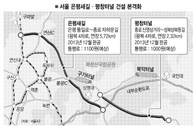 19일 서울시에 따르면 다음달 은평새길과 평창터널의 사업시행자를 지정, 내년 1월부터 실시설계와 도시관리계획 절차에 착수한다. 내년 12월 착공해 2013년 12월 완공 예정이다.